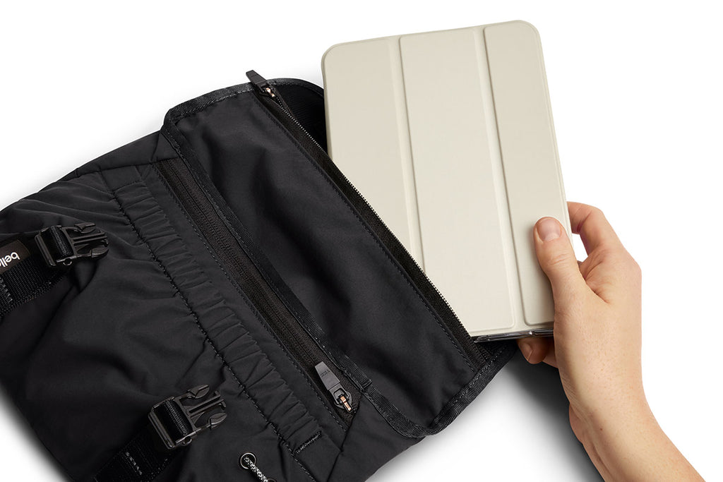 Interior zip pocket fits a tablet or 14” laptop (in a cover)