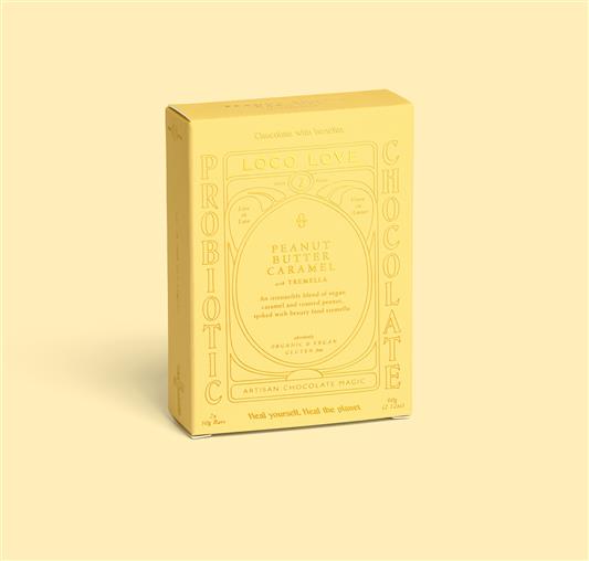 An irresistible blend of vegan caramel and toasted peanut, spiked with beauty food Tremella mushroom. Infused with Loco Love's own handmade peanut butter; it’s smooth and crunchy, not overly sweet, slightly salty. They couldn’t find a peanut butter on the market that didn’t have nasty additives like vegetable oil so they made their own.