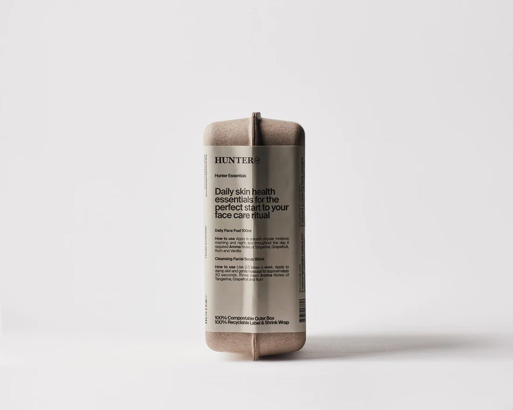 The Hunter Essentials Kit features Hunter Lab's best selling Cleansing Facial Scrub, the 2-in-1 exfoliating cleanser to deeply cleanse and renew, and iconic Daily Face Fuel to imbue weightless hydration and antioxidant protection for soft, radiant, and healthy skin.