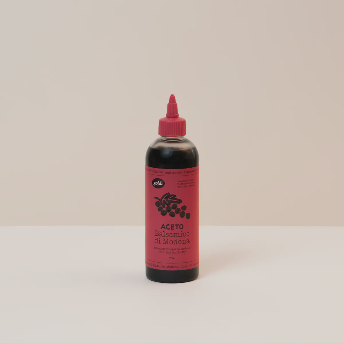 Aceto is a balsamic vinegar that sparkles with fruitiness and flows like velvet. It's sweet, sour and made for Goldi the traditional way by one of the best in Modena, Italy. The flavour has hints of sweet cherry, molasses, prunes, rhubarb and woodsmoke. Use this beauty to dress, dip or marinate. A perfect accompaniment to Goldi Smooth and Punchy extra virgin olive oils.