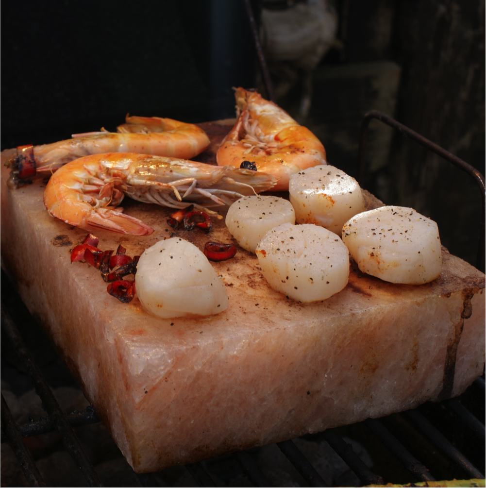 Experience a completely new way of cooking on your beloved BBQ. A block of Himalayan salt transforms your regular barbequing into a gastronomic extravaganza. Simply add oil to the top surface of the salt, then heat it up slowly until you have a sizzling cooking surface that flavours your food evenly. Ideal for meat, fish, shellfish, and vegetables, or even as a chilled serving plate for sushi or fresh fruits. Wipe or scrape it clean after each use and store at room temperature.