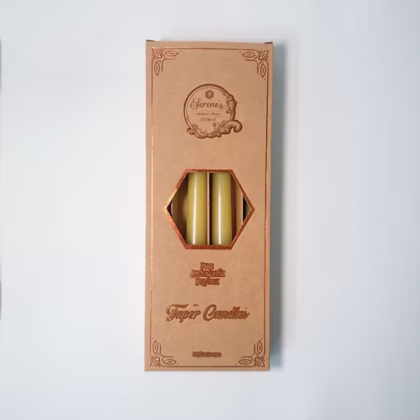 Standing elegantly at 25cm tall, each candle embodies natural sophistication, crafted from pure beeswax for a clean, even burn. The sleek, glossy finish enhances their radiant glow, creating a warm, inviting ambiance ideal for any setting.