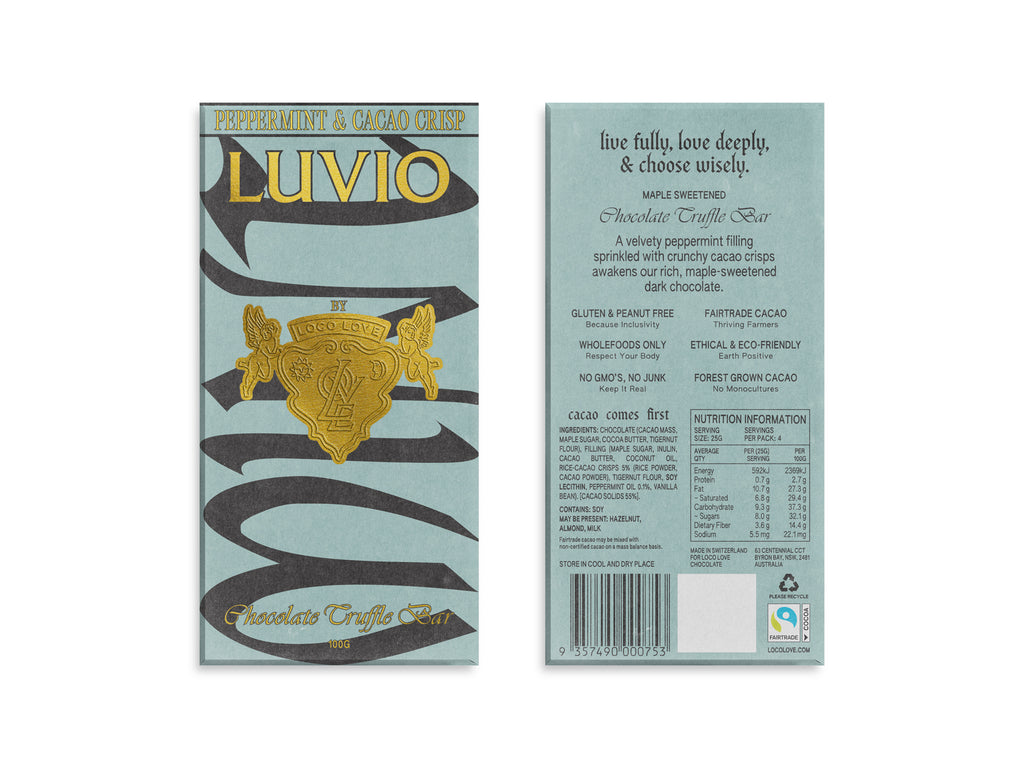 Bright, creamy, and seriously refreshing. A cool peppermint truffle centre with a smattering of cacao crisps, draped in smooth maple-sweetened chocolate. Maple brings minerals, antioxidants, and sweetness without the crash, so every bite feels clean and satisfying. Perfect after dinner — or anytime you want that clear, mint-chocolate hit.