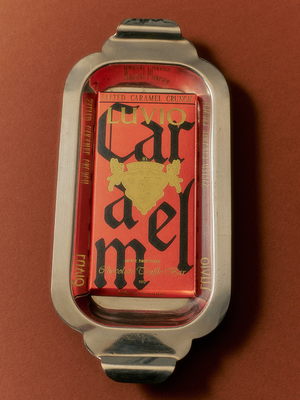 A cream truffle centre with light caramel notes, crisp caramel shards, and a trace of fleur de sel. Wrapped in maple-sweetened tigernut chocolate, it melts slow and stays soft. Beautifully balanced and ridiculously easy to love. (Contains dairy)