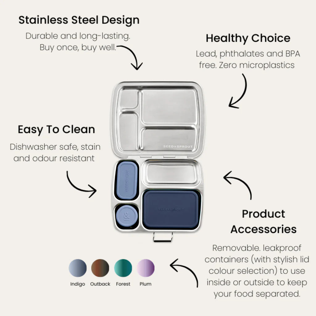 A stainless steel bento box that's a statement towards a healthier future for people and planet - the perfect opportunity to teach the younger generation. It's set to be the last lunchbox you'll ever invest in. Join us in a movement towards plastic free lunches.
