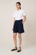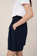 The Carter Shorts feature a relaxed fit with double front pleats that create a playful, voluminous silhouette. Sitting at mid-rise, they with elastic through the back waistband for added comfort and fasten with a nut button fly. Inspired by utilitarian design, the shorts have angled front pockets. All Fairtrade organic cotton. All plastic-free.
