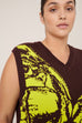 The Wingspan Vest offers a standard fit with a flattering v-neck and ribbed detailing at the neckline, hem, and armholes. A bold fluro yellow butterfly design on the front creates a striking contrast against the rich mahogany base, adding an eye-catching color clash to this simple yet distinctive piece. Style on its own or layer over your favourite tee. All Fairtrade organic cotton. All plastic-free.